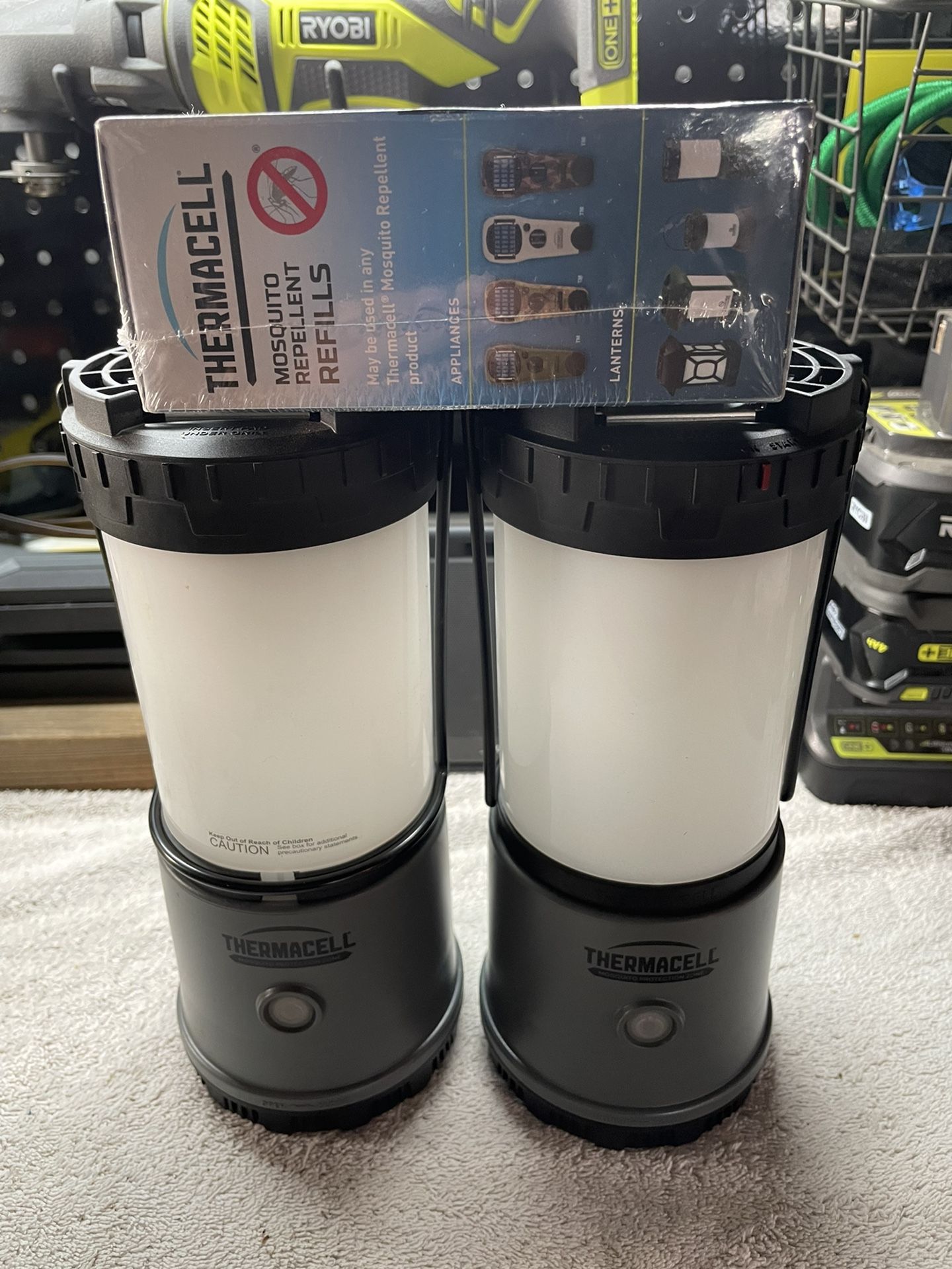 2x LED lanterns with mosquito repellant refills. Sold as a pair.