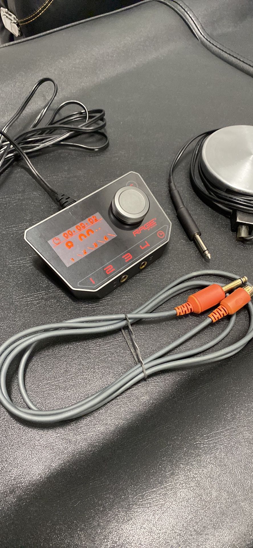 Rage adjustable power supply with power cord, RCA cord , foot pedal used but great condition. I also have 8 machines for sale as well.