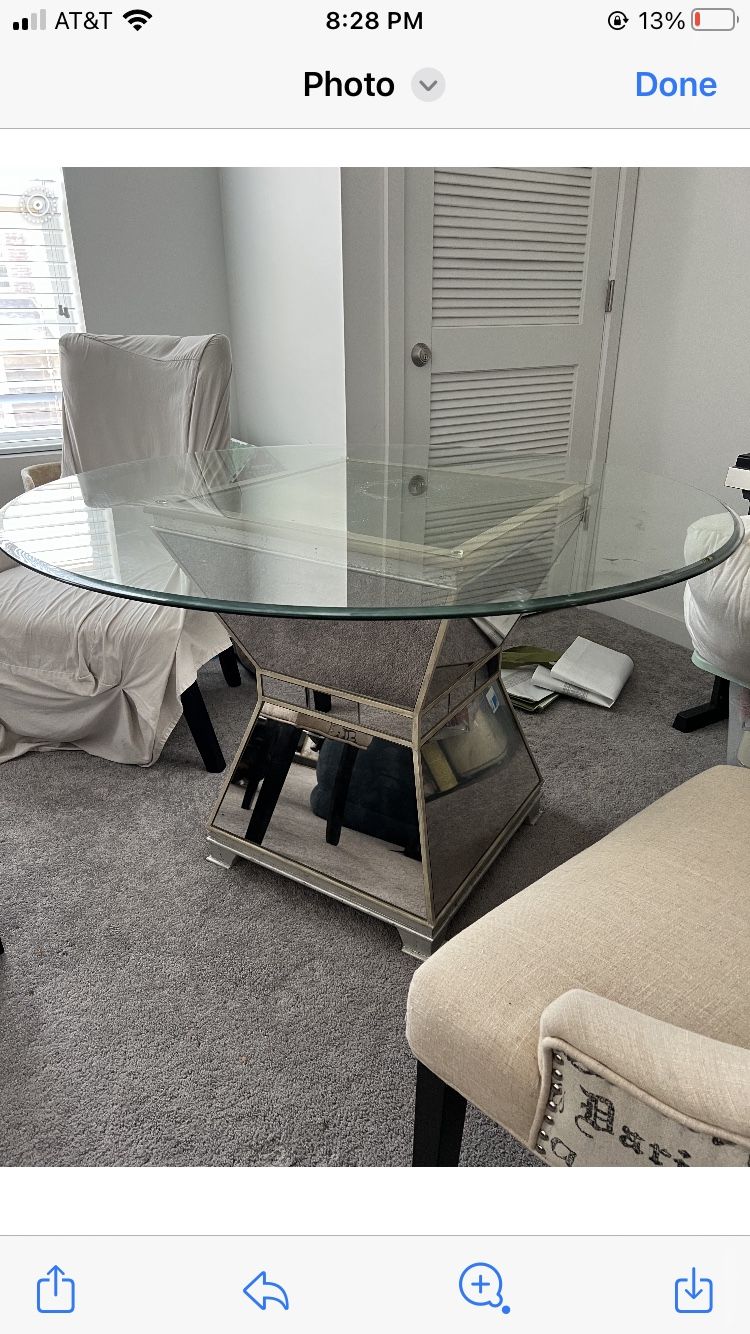 Art deco beautiful dining table. Mirror base table top 48 inches. Very good condition. Wasn’t used much.