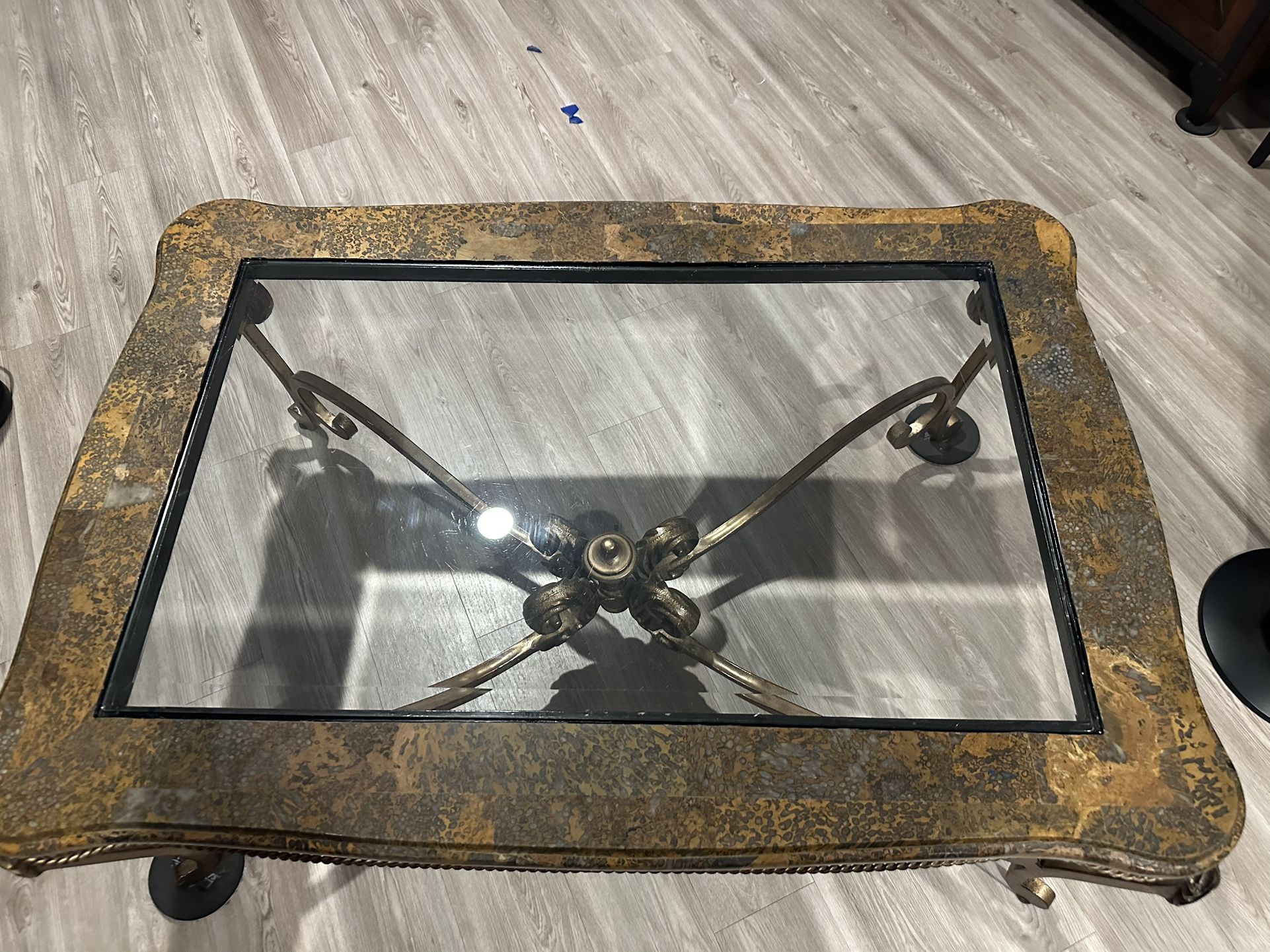 Heavy duty iron glass marble coffee table