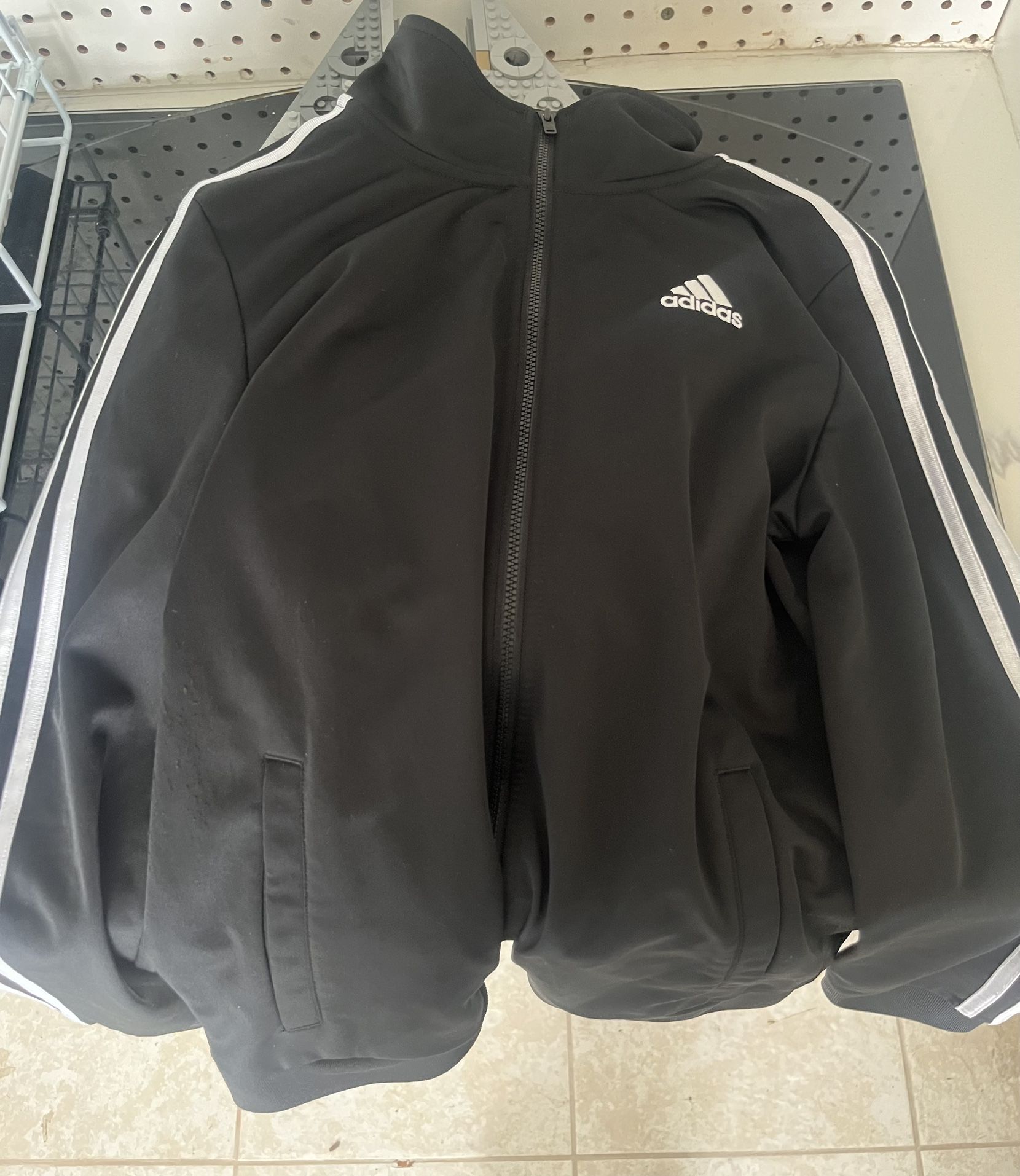 Adidas Turtleneck Black Jacket Zip up White Stripes Boys Size L 14/16