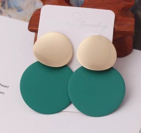 Green and Gold Double Circle Dangle Earrings.