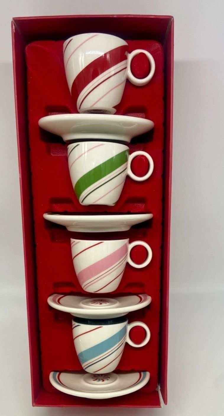 STARBUCKS!!!!Set Of 4 Peppermint Swirl Tea Cup And Saucer Set