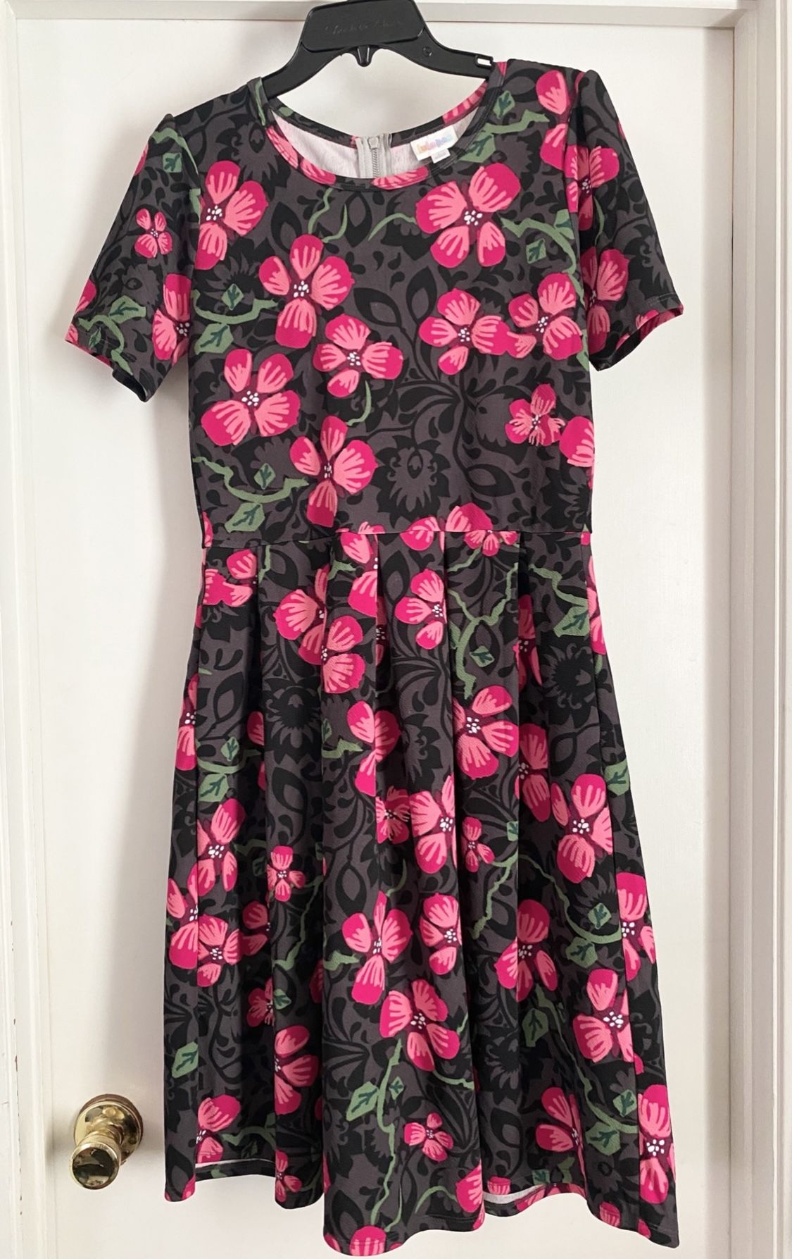 Lula Roe Black and Pink Floral Dress, Size L, w/pockets