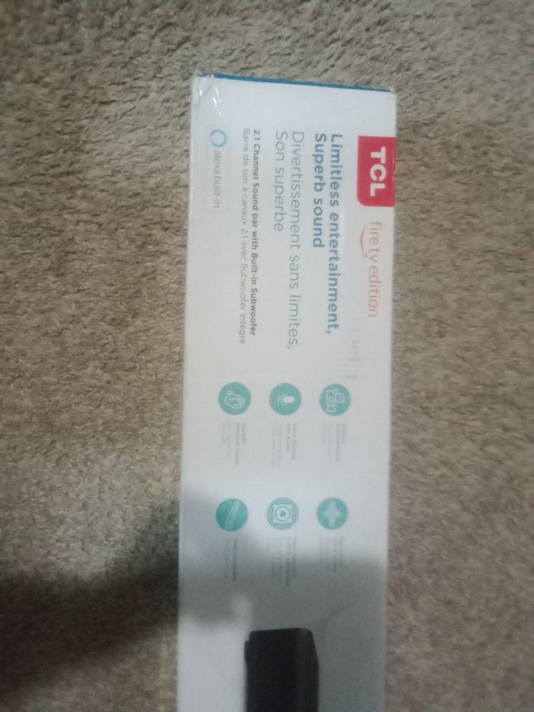 Selling Brand new unopened in the box - TCL Alto 8+ 2.1 Channel Sound Bar with Built-In Subwoofer – Fire TV Edition Reason for selling is fire place stand is too short to fit this Sound bar. Since sound bar is exceeds length in the space which have !! It's Alexa capable built in subwoofer with 280 watts. Product Dimensions: 37.99 x 4.06 x 2.32 Item Weight: 6.6 pounds Sells for $220 plus taxes, Make me a reasonable offer. Will not respond to low Ballers
