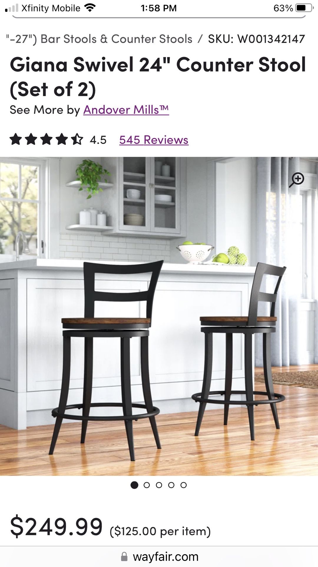 Two brand new bar stools from Wayfair - assembled them and they are a bit too big for the space - also, one seat has a scratch, but could probably be filled in/buffed out. Original price was 250$.