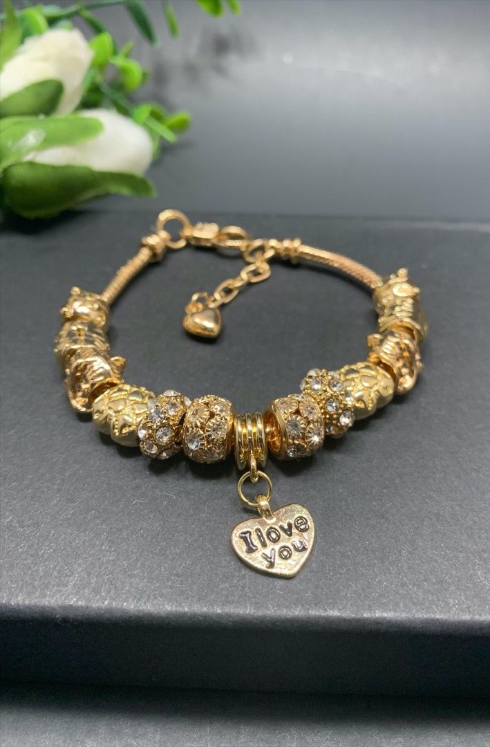 18K Gold Plated Crystal Rhinestone Star Love Heart Charm Bracelet, I love you