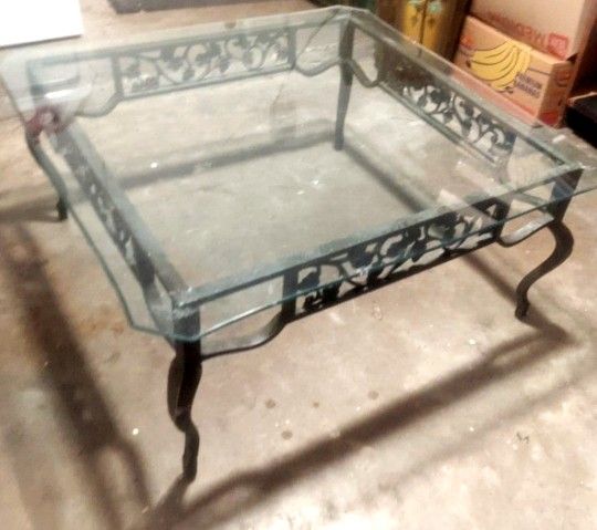 Measures 38 in by 38 in by about 18 in tall is in perfect condition glass top large coffee table table