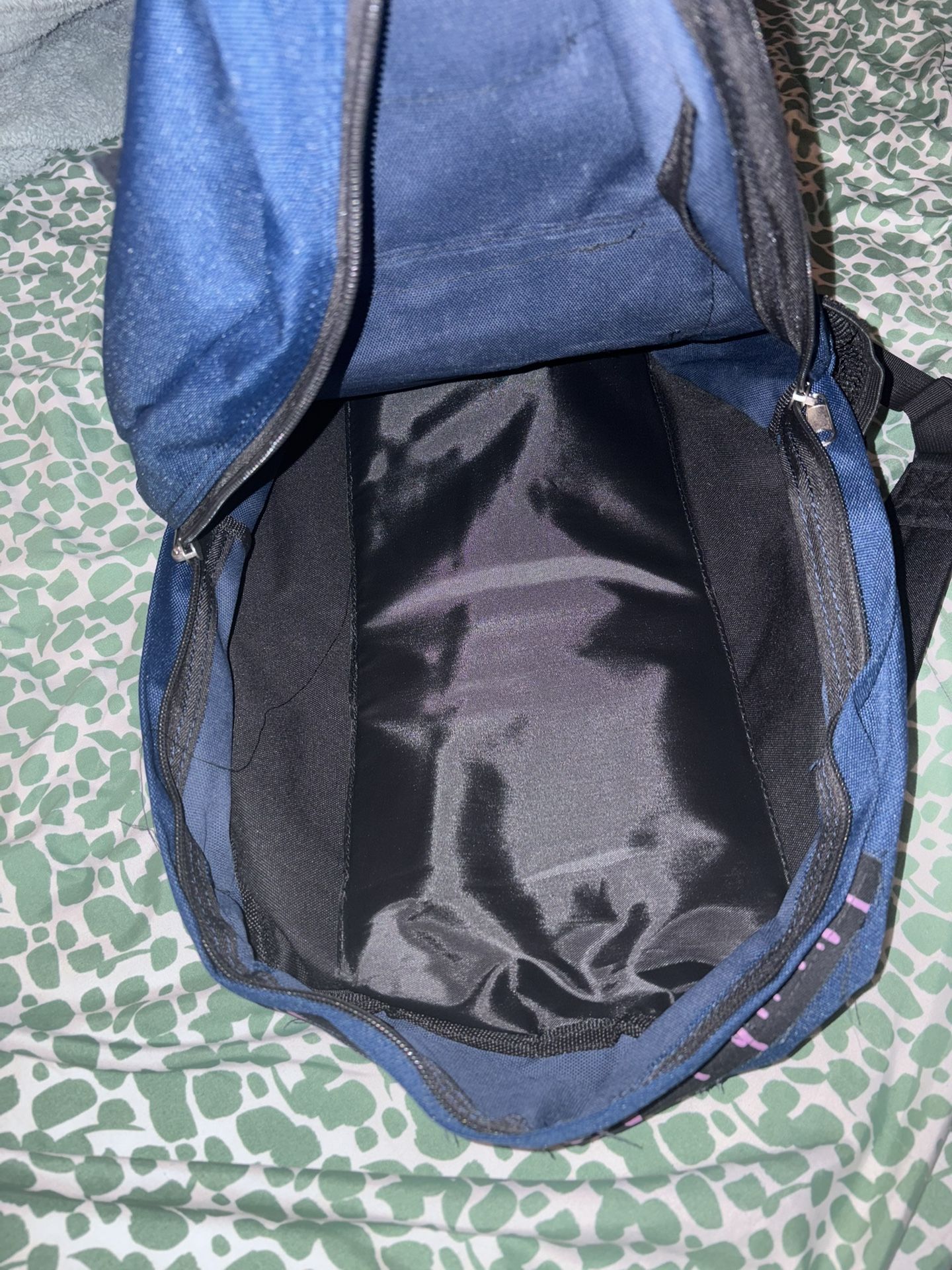 Kim Krueger blue backpack with pink patches Located in Whittier pick up only