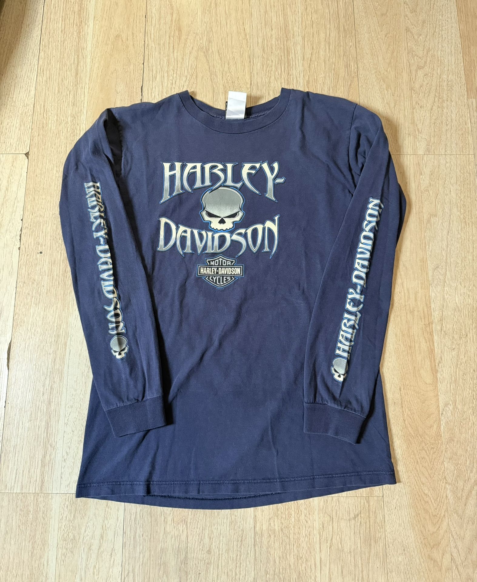 vintage Navy Blue Harley Davidson Skull Long Sleeve