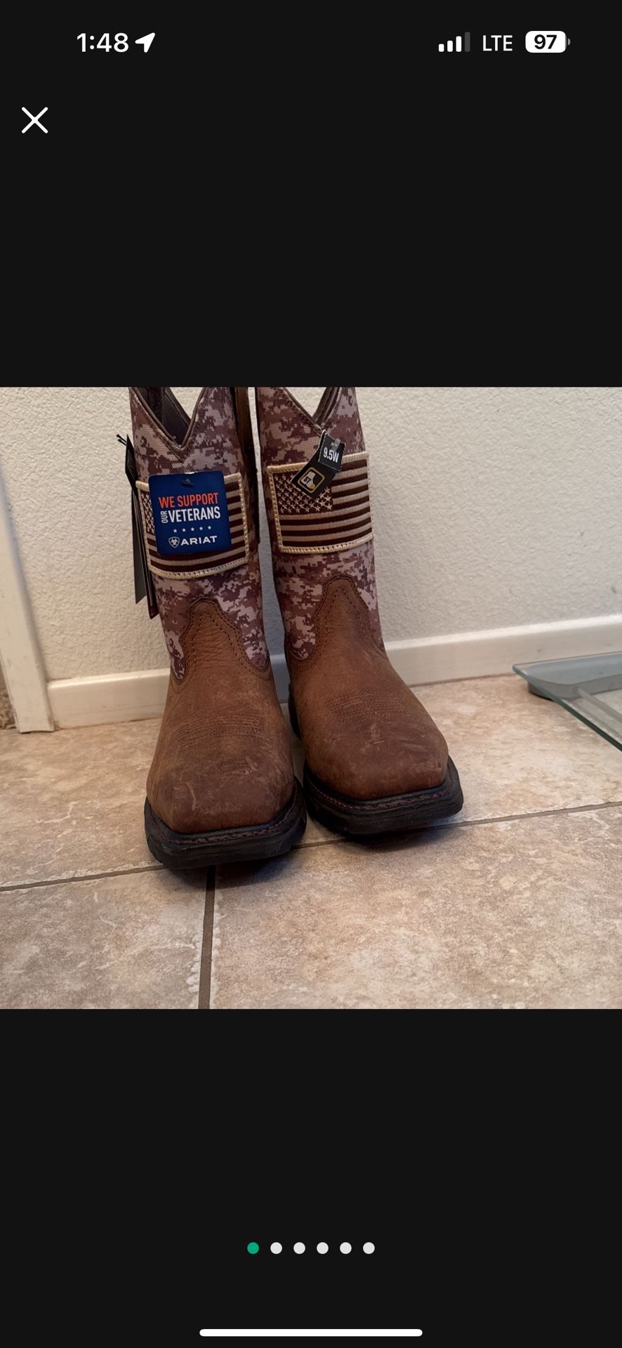 Brand new. Tags still on. Nothing wrong with them just ended up being too small. Size 9.5 wide. Ariat patriotic boots. Price is negotiable.