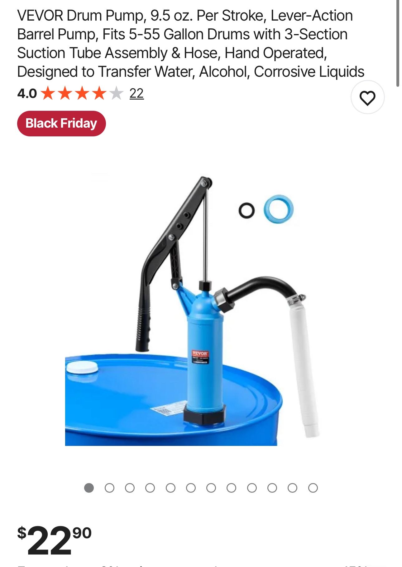 VEVOR Drum Pump, 9.5 oz. Per Stroke, Lever-Action Barrel Pump, Fits 5-55 Gallon Drums with 3-Section Suction Tube Assembly & Hose, Hand Operated, Designed to Transfer Water, Alcohol, Corrosive Liquids