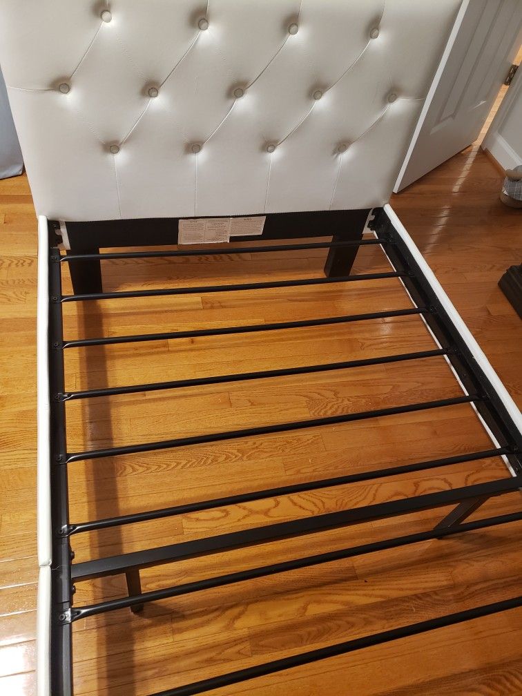 Twin Bed Frame, Faux Leather Tufted Headboard