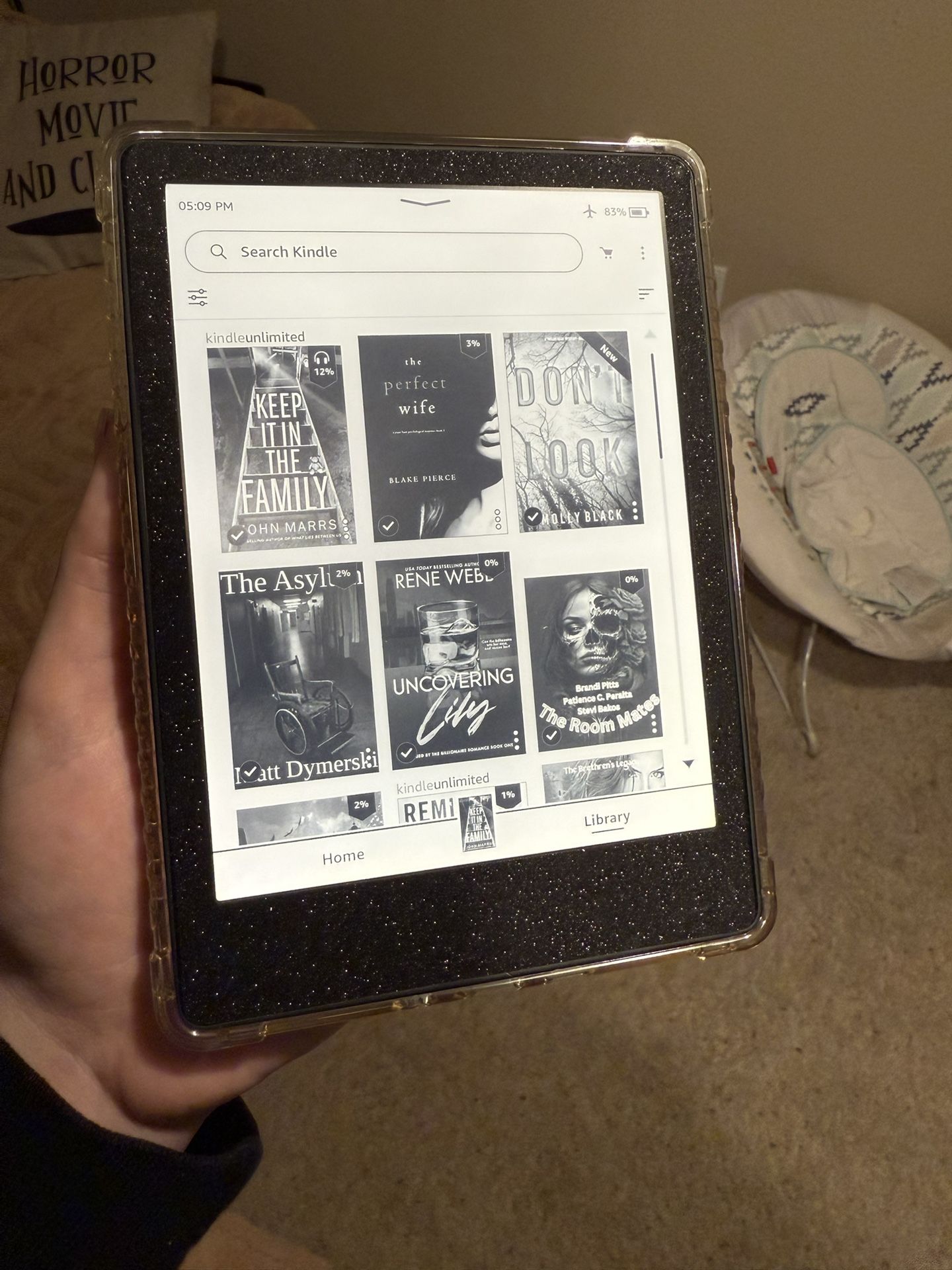Amazon Kindle Paperwhite 6.8” (11th generation) 16gb - Comes with screen protector, black glitter skin, clear case, and USB-C charging cable - No Ads It’s amazing and has great battery life, I just don’t use it as much as I used to $100 firm