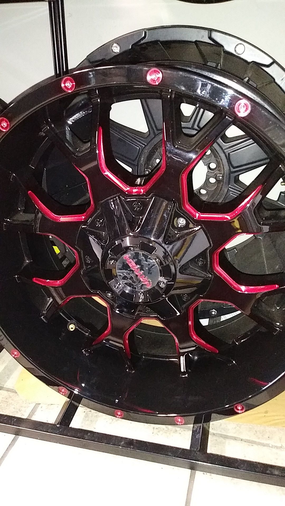 20 x 9 mayhem warrior wheels 8 lug universal gloss black and red milled Famous tires and wheels LLC π 1601 s 7 st Phoenix , AZ 85034π π 8 am - 6 pm π !!!!Mon - Sat !!!! Finance available, 90 day payment plans if any wuestions feel free to contact us at π²{contact info removed} π²