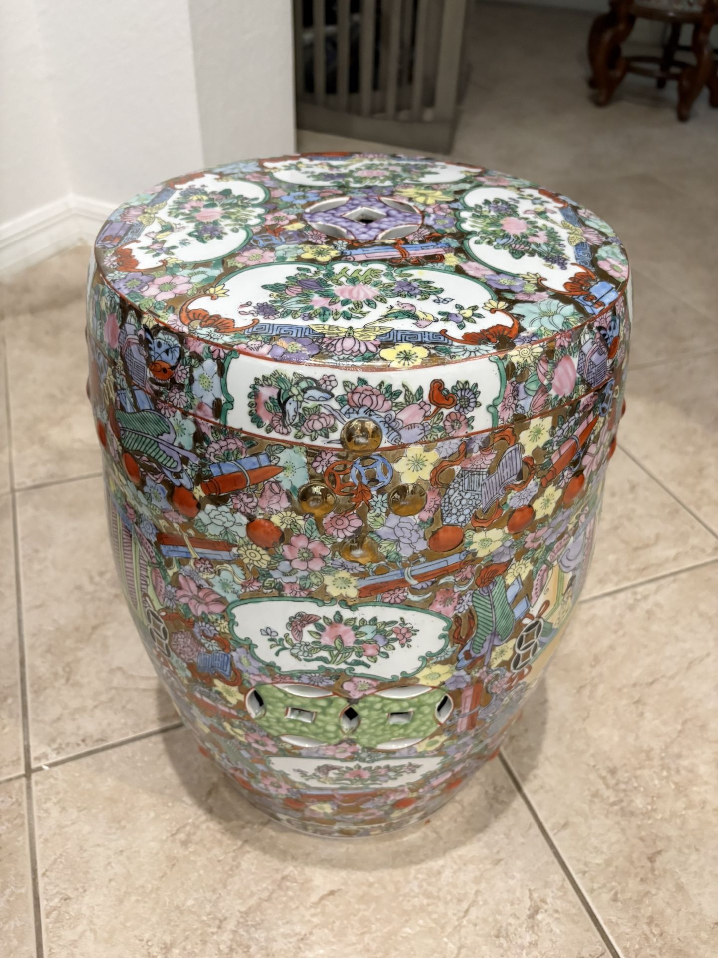 Exquisite Chinese Oriental Asian stool. 18” tall