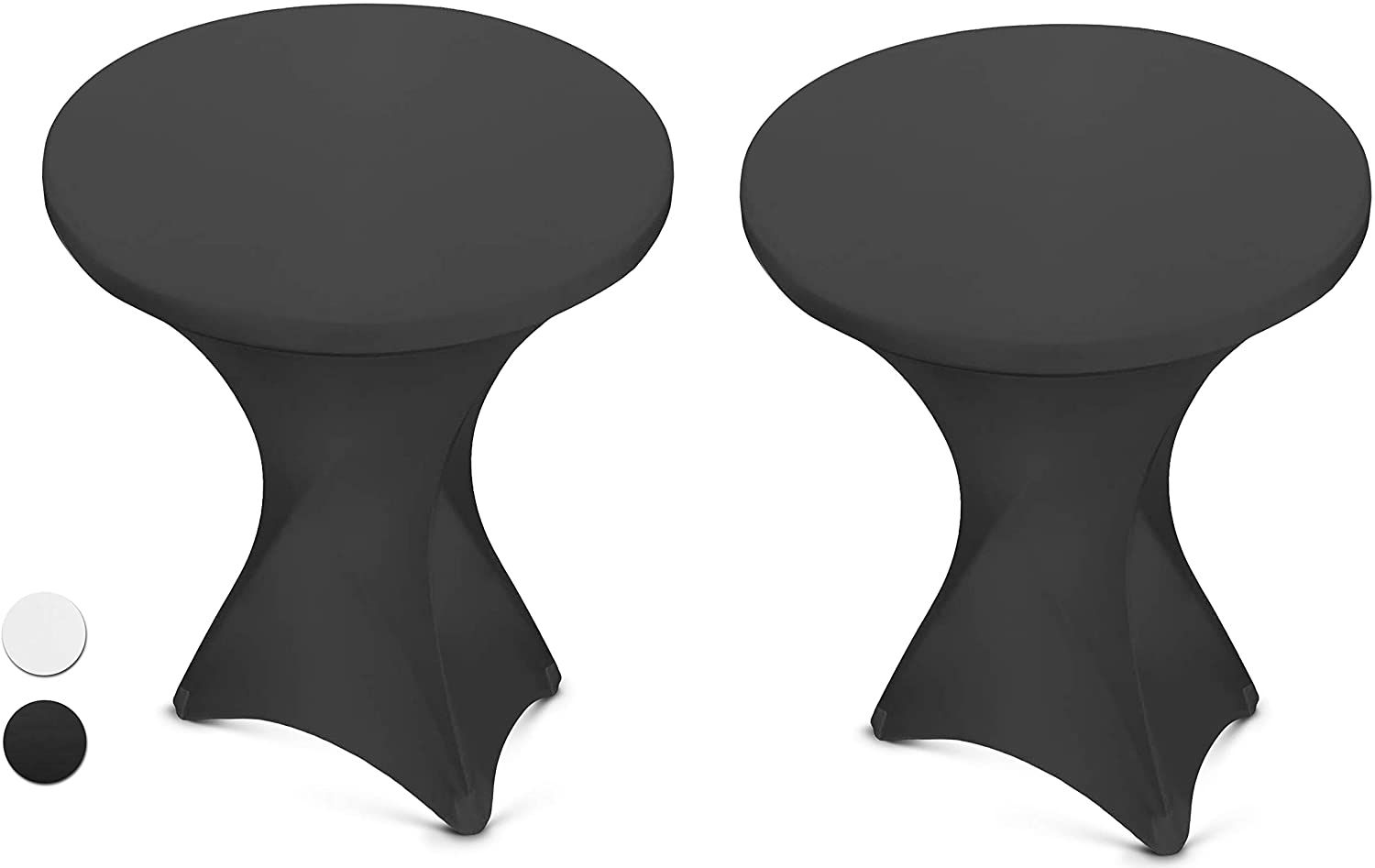 Black Spandex Cocktail Table Cover - Fitted High Top Round Table Cloth, Round Tablecloth Covers for Pub Table, Round Kitchen Table, High Top Table, Bistro Table, other Tables and Cocktails (2 Pack)