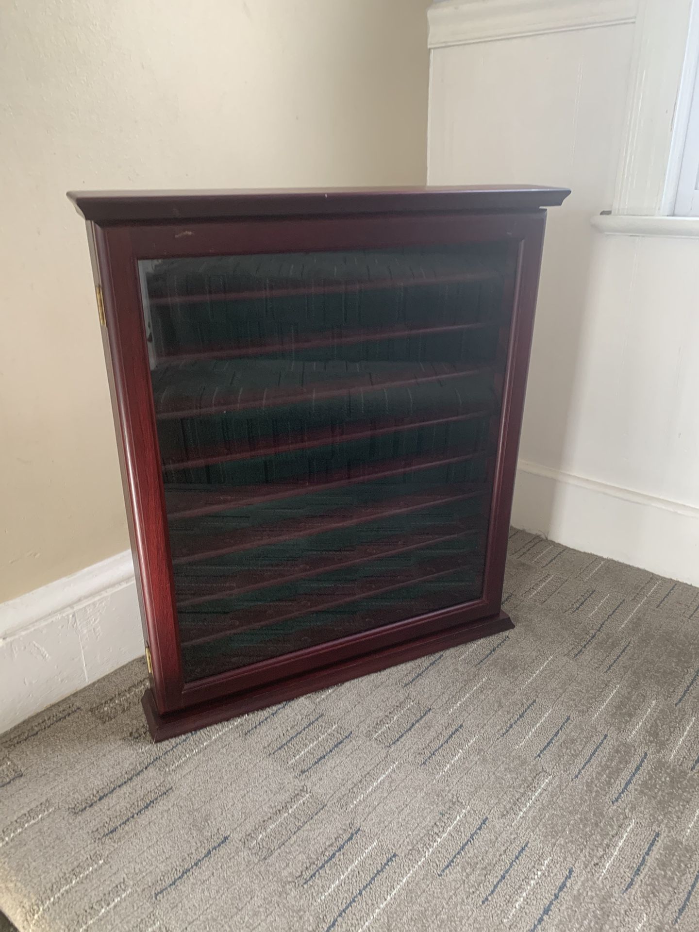 Vintage 81 Golf Ball Hanging Cabinet, Mahogany Wood, Glass Door, Brass Hardware