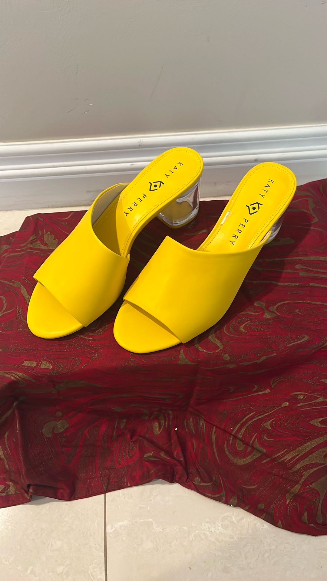 New, Katy Perry sandal Size 10M Color Yellow subtle asymmetry and elegant lines pair with a contemporary translucent heel adding modern lift to dressy looks in The Landen mules by Katy Perry. Features 2" heel Round-toe slip-on mules Translucent block heel Manmade upper; manmade lining; manmade sole Imported
