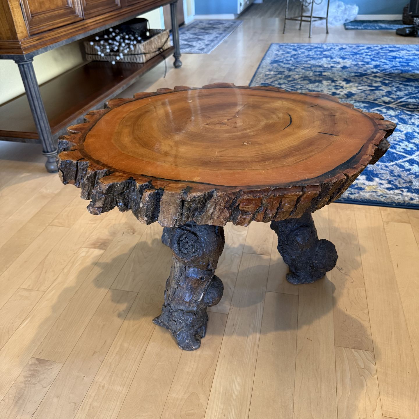 Very unique hand crafted tree table 46-48” 17” high