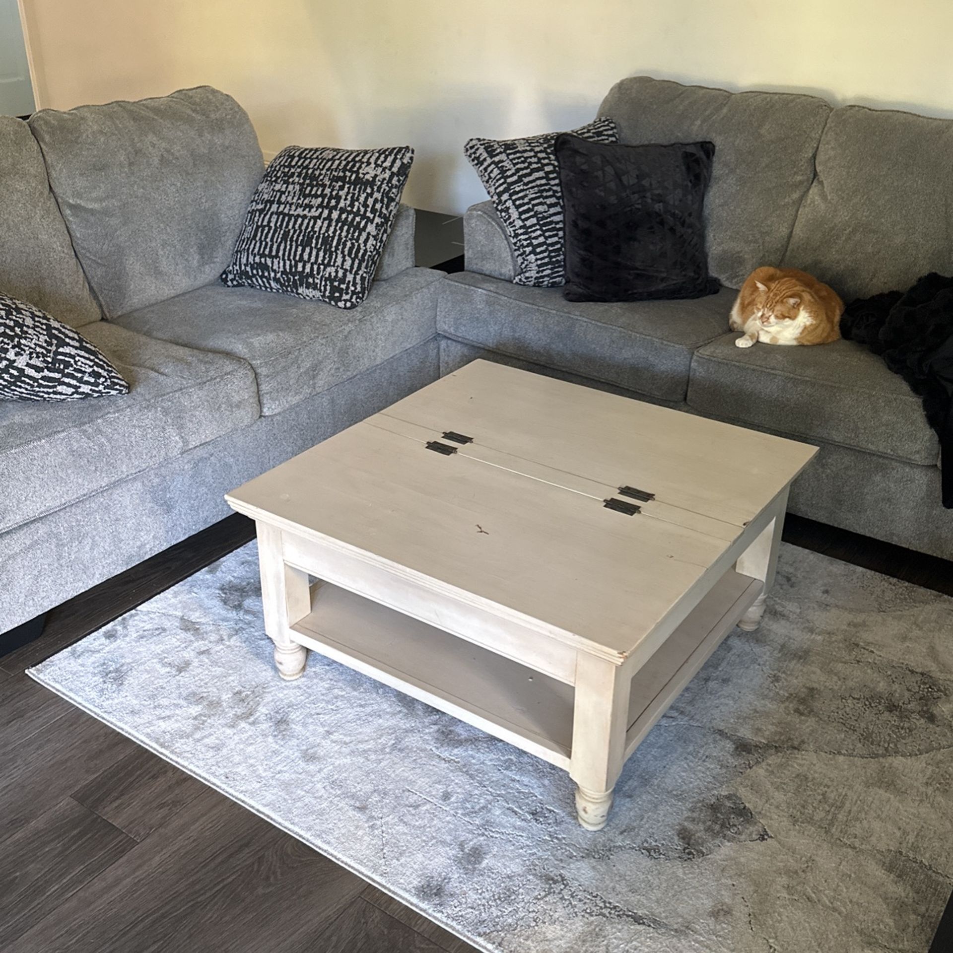 Nice table with a lot of storage. 35 1/2”x 35 1/2”. 18 1/2” tall.