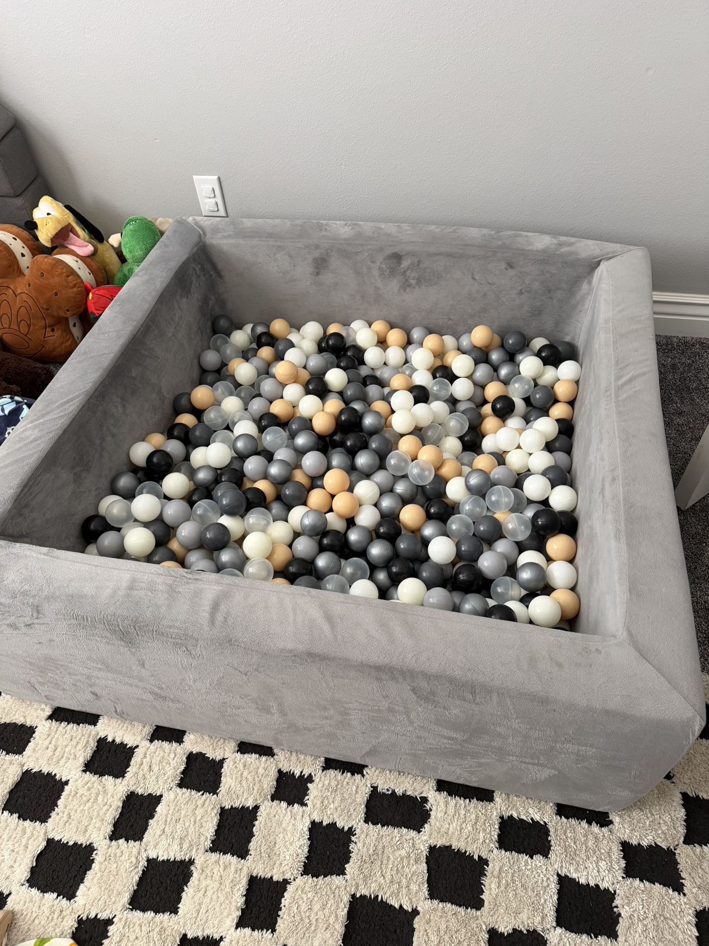 Gray ball pit, sturdy foam. Includes all the balls