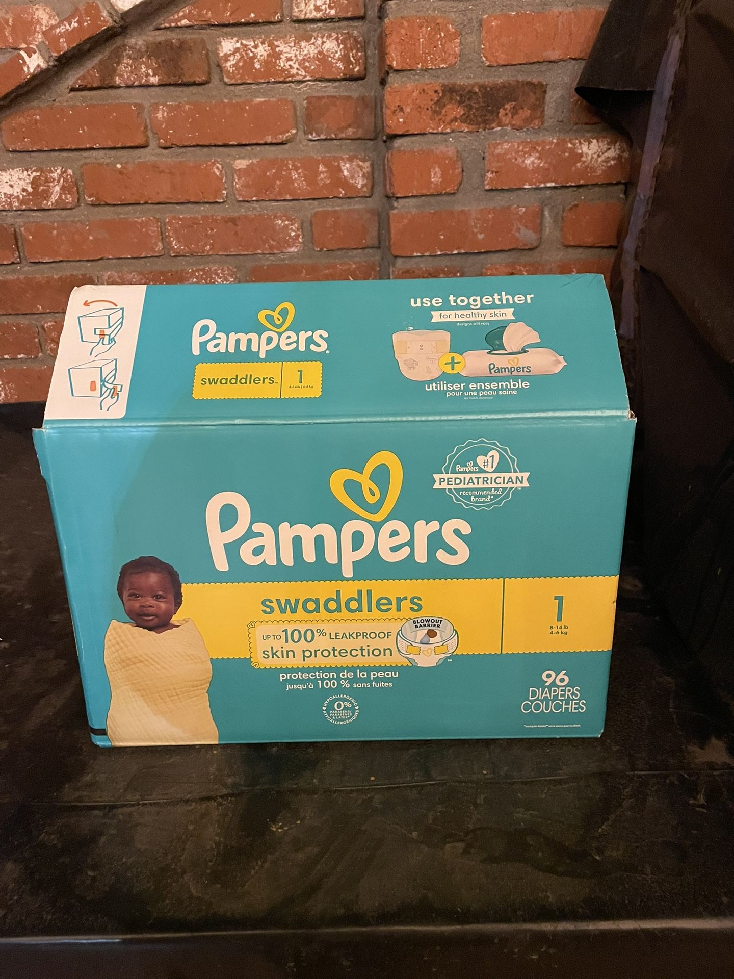 Open box but never used or opened packages. Baby outgrew before using. 96 count