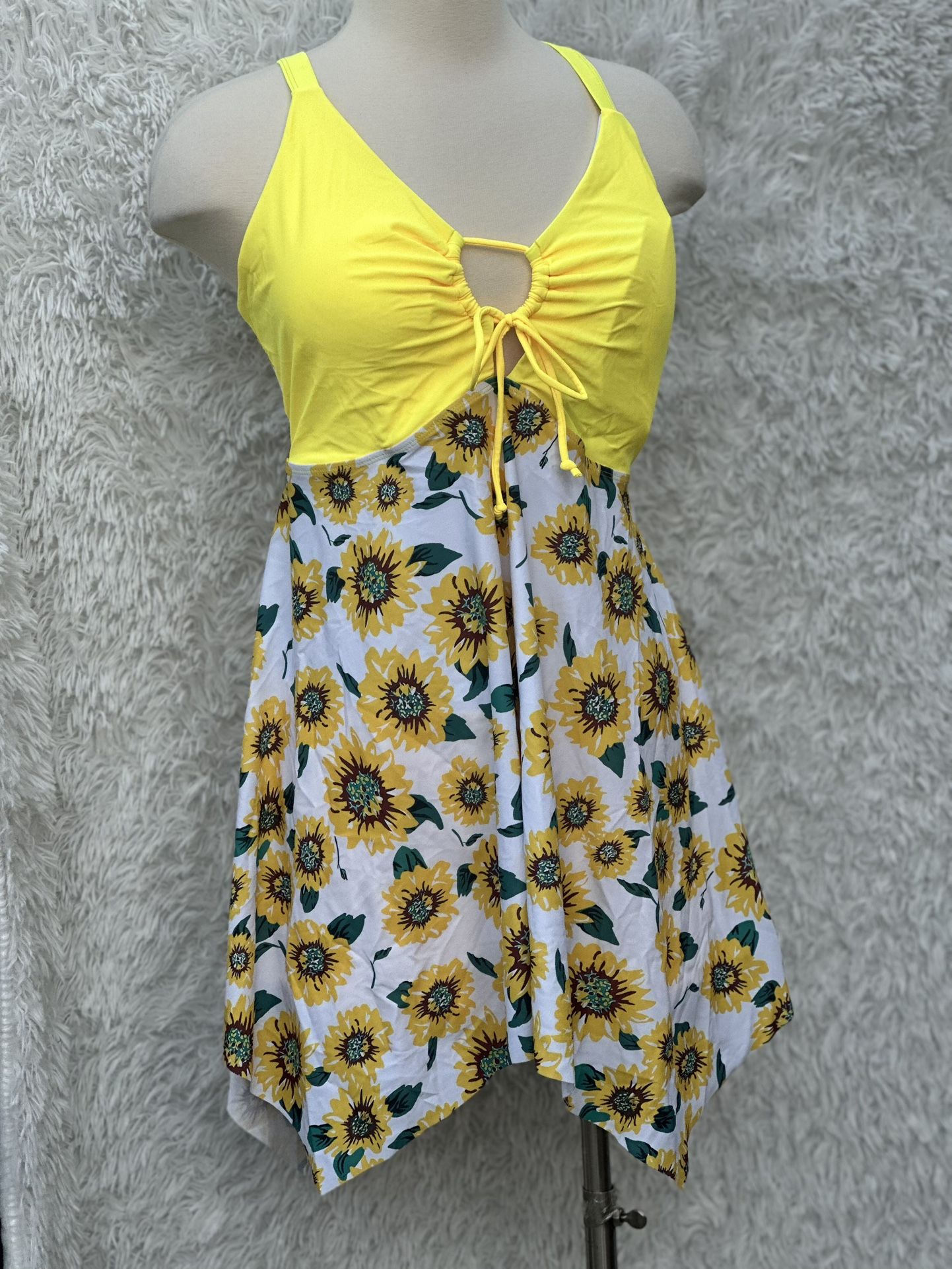 Yellow Sunflower Tankini one piece Dress size 16W . Perfect for sunny days. With removable padding main fabric: 85% polyester, 15% elastane #plus size 68