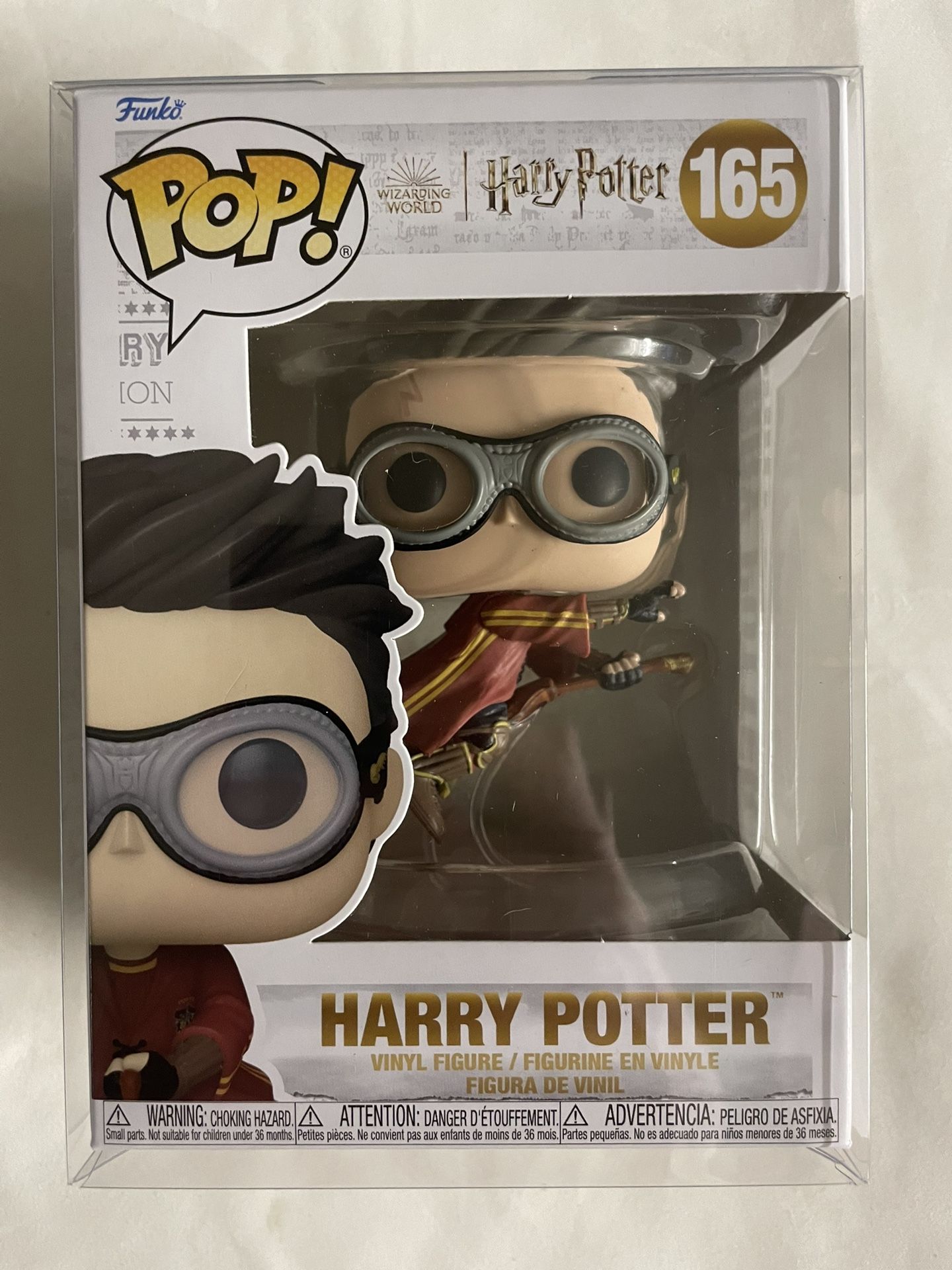 Funko Pop! Harry Potter #165 – Quidditch Harry Bring home Harry Potter in his Gryffindor Quidditch uniform! This Funko Pop! figure features Harry mid-flight on his broomstick, with his signature glasses and lightning bolt scar. Comes in a collector-friendly box.