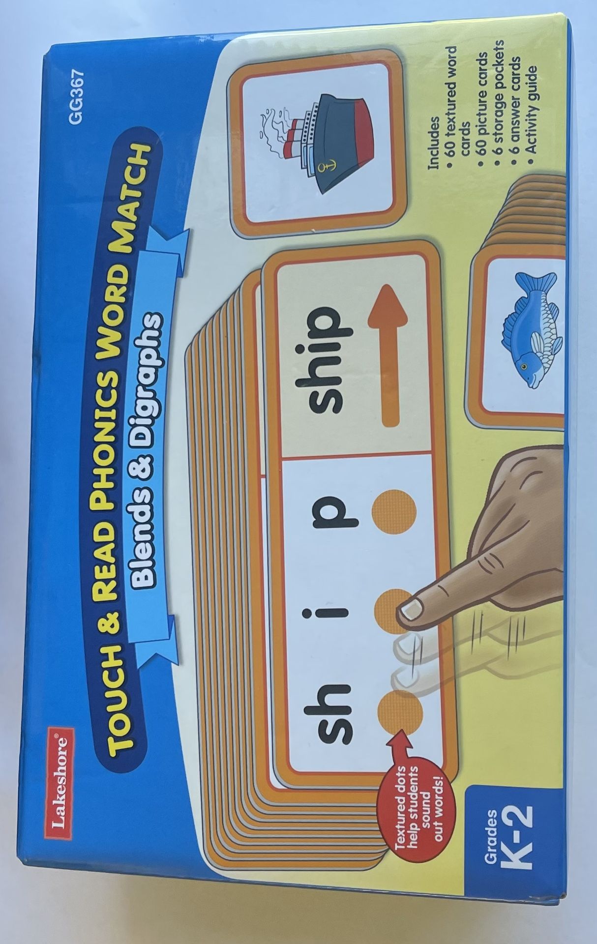 Touch & Read CVC Words Match Bought for $30 Like new some pockets were never opened. Description from Lakeshore website: With these engaging match-ups, children master CVC words—one phoneme at a time! Kids just select a word card and touch the textured dots as they say each sound. Then they read the full word—and find its matching picture card! You get 60 textured word cards, 60 picture cards, 6 storage pockets and 6 answer cards. Pockets measure 2 1⁄2" x 6 1⁄2". Additional Information Develops skills in isolating sounds in CVC words, blending sounds and decoding words.
