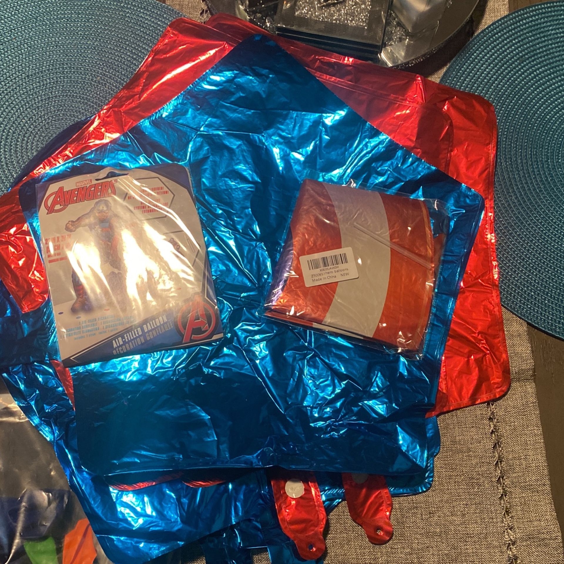 7 plain stars and round blue and red 1 action figure air fill 1 shield caption america