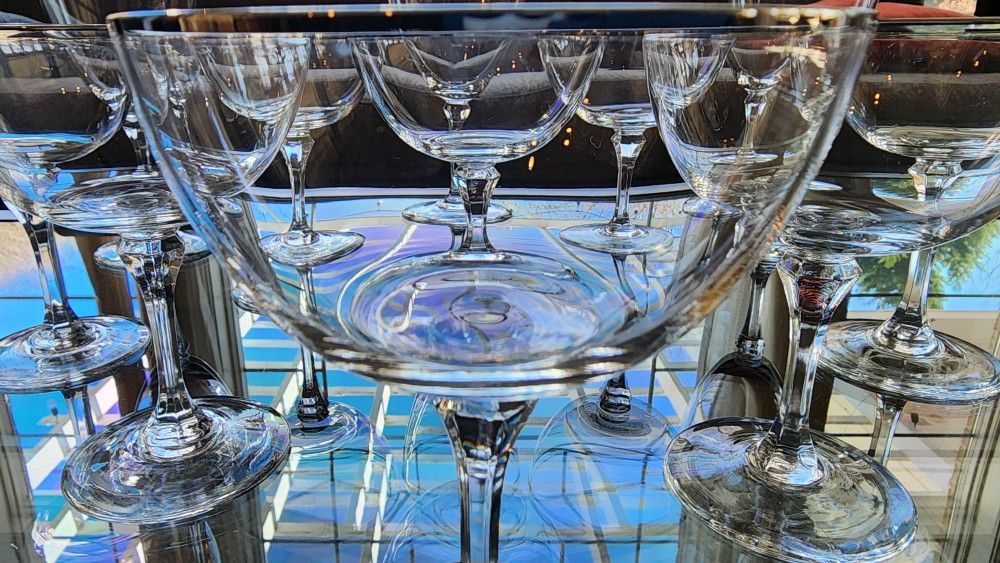 Wine Glasses (5) And Rimmed Champagne Coupes(8)