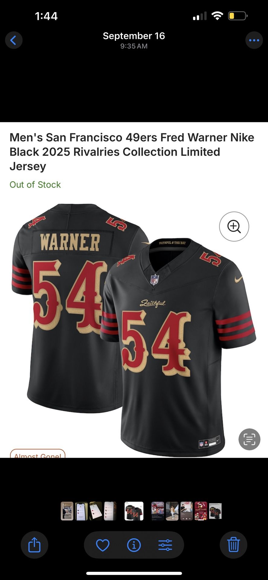 Two brand new in bag, stitched numbers and name, revery, black jerseys, Fred Warner size, LARGE AVAILABLE!