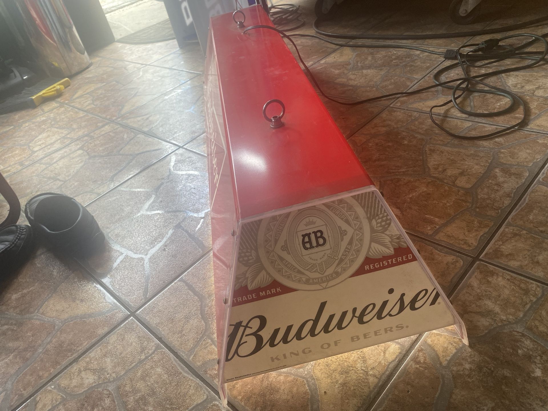 In amazing condition this light is fully functional . With on a few visible scrated from everyday wear and tear this piece will look Amazing in anyone’s billiard room