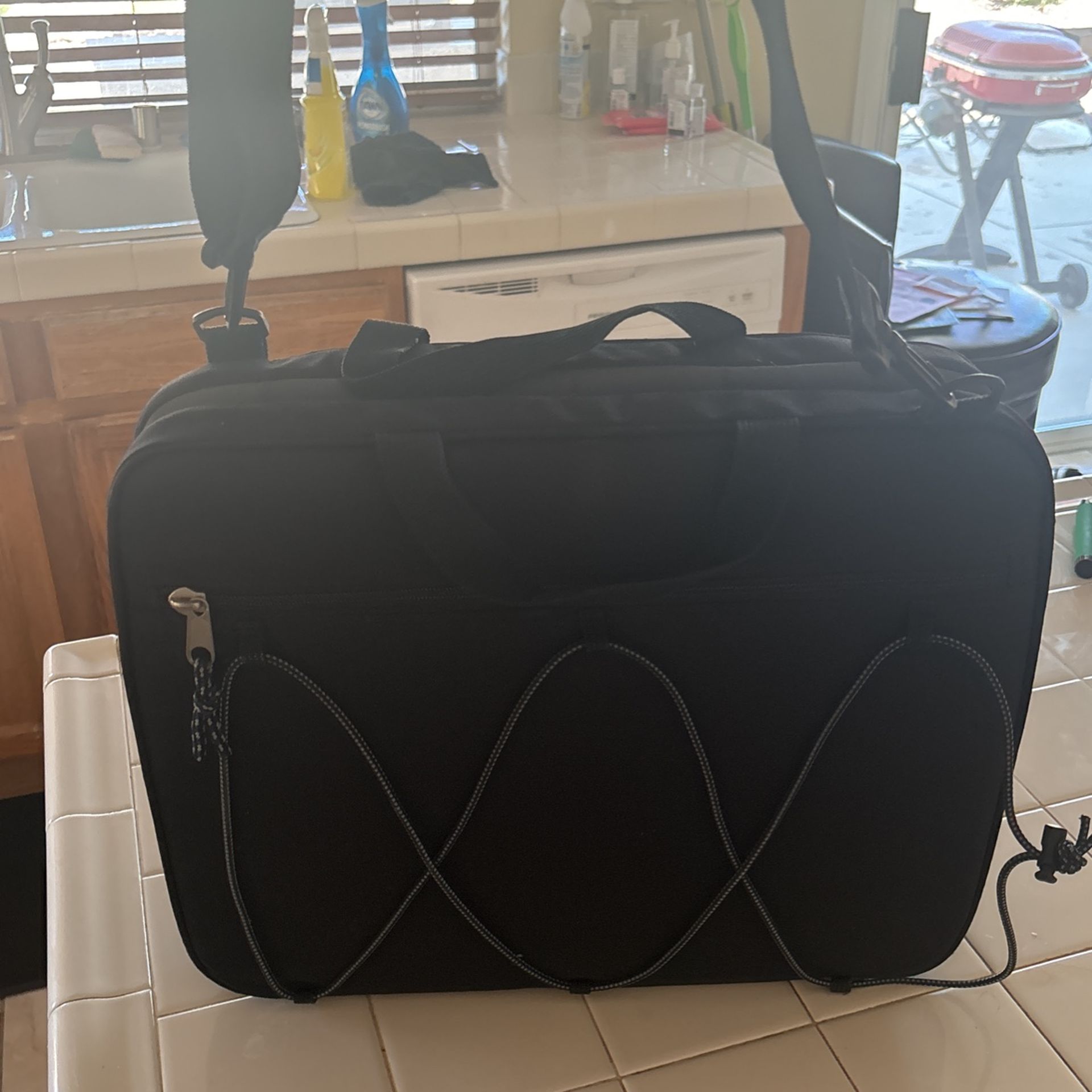 Good condition with many compartments. Very durable so nothing will break. Has a strap to put around your shoulder.