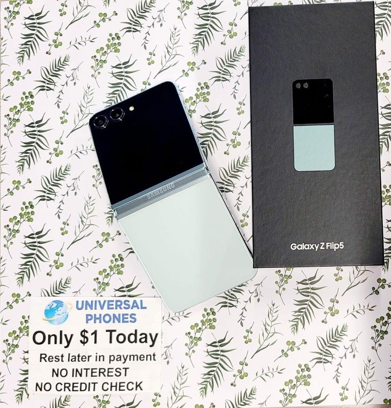 SAMSUNG GALAXY Z FLIP 5 5G UNLOCKED. DRONE $1 DOWN TODAY REST IN PAYMENTS.NO CREDIT CHECK