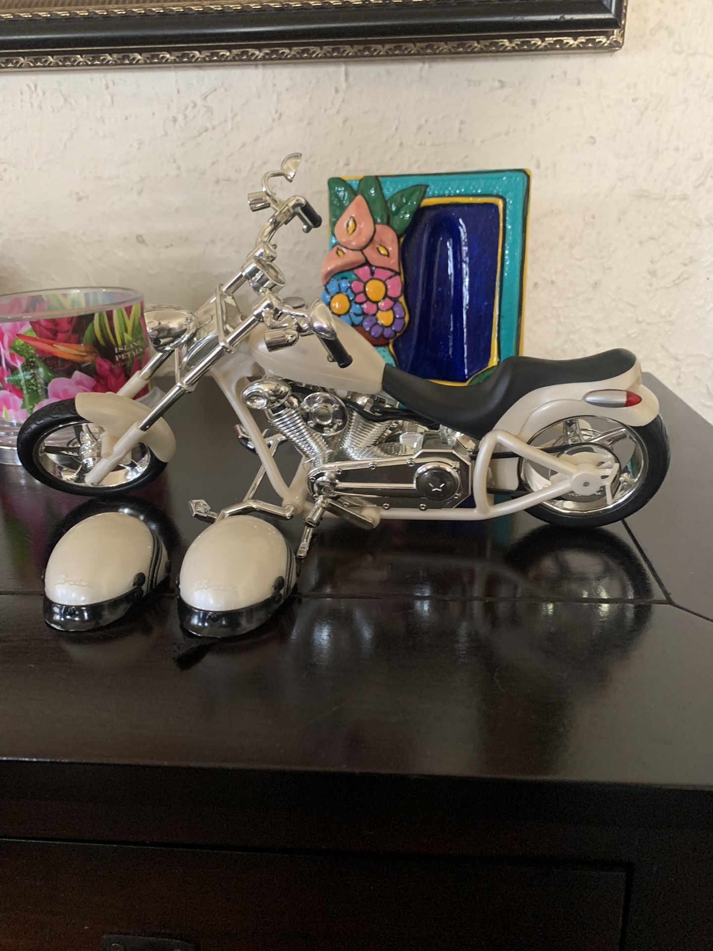 This is a hard to find in this color 2003 Bratz motorcycle. It is extremely well taken care of. The head light and rear lights turn on, it also makes revving sounds. The 2 helmets in the pictures are included.