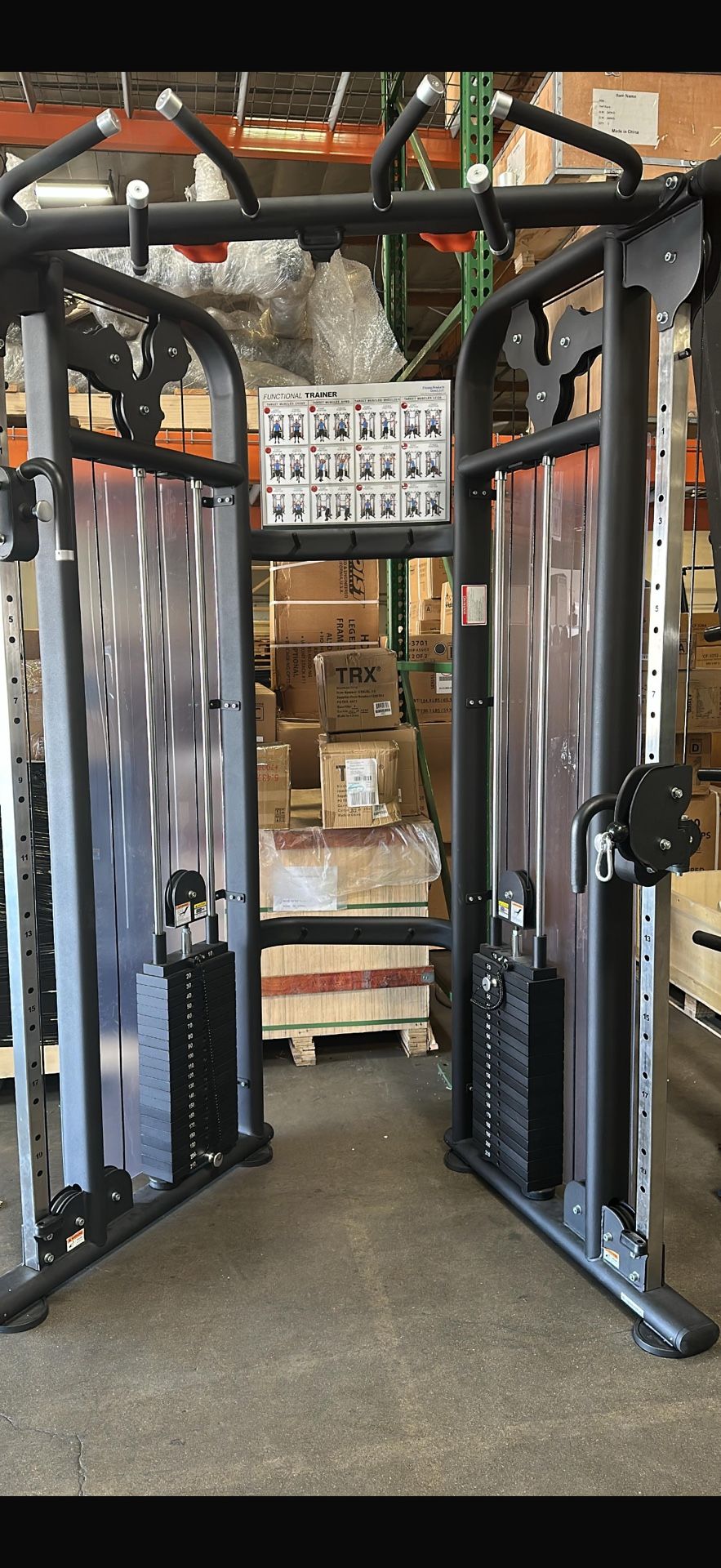 Commercial grade 85" Black dual adjustable pulley machine 210 pound weight stacks in each side will have other attachments also rope handle straight bar etc delivery and install available for additional costs