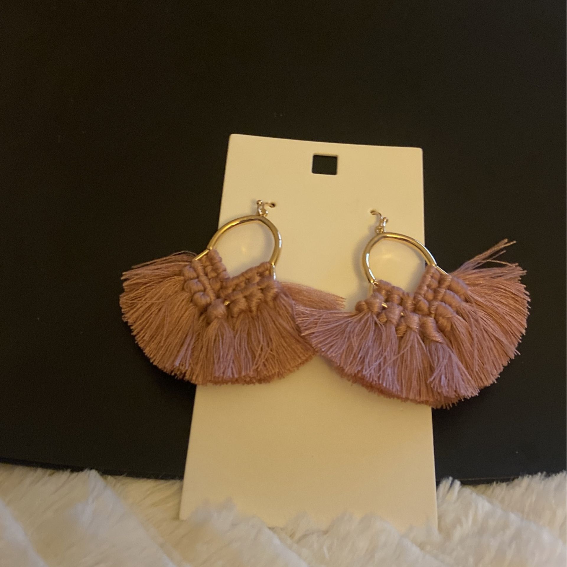 Gold hoop. Mauve tied tassels