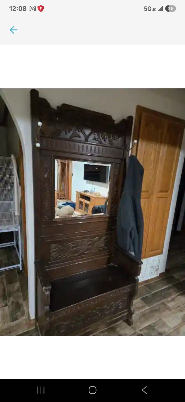 This is fumed oak and is a Renaissance Revival hall tree, circa 1880