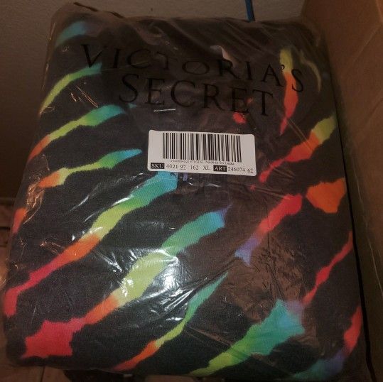 MAKE OFFER! NEW! Size XL. Victoria's Secret PINK Sherpa Lined Campus Cowl Neck Pullover. "Pure Black Rainbow Tye Dye" This pullover has an oversized fit. Take one size down for closer fit. Body and cowl neck lined with soft and cozy Sherpa. Cowl neckline with adjustable drawstring. Side seam pockets Imported cotton/polyester Rare, Discontinued, and NLA on website.