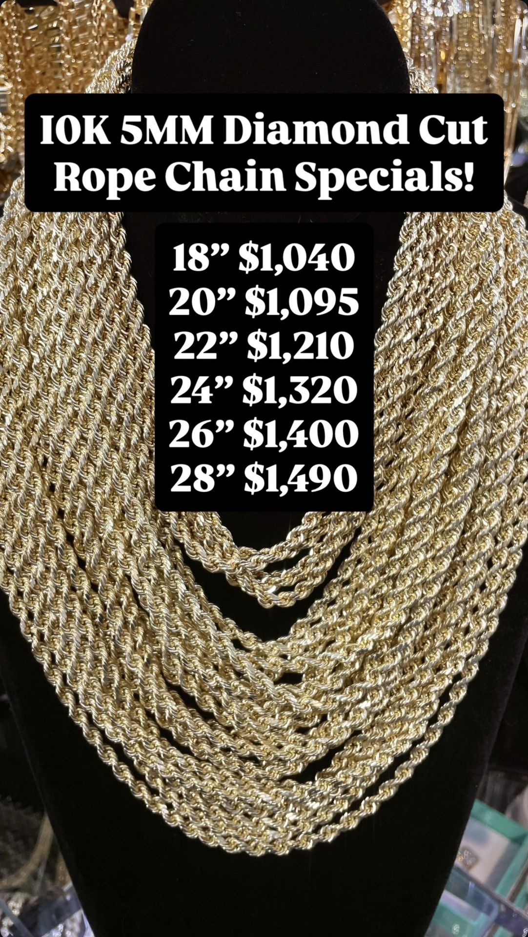 10K 5MM Diamond Cut Rope Chain