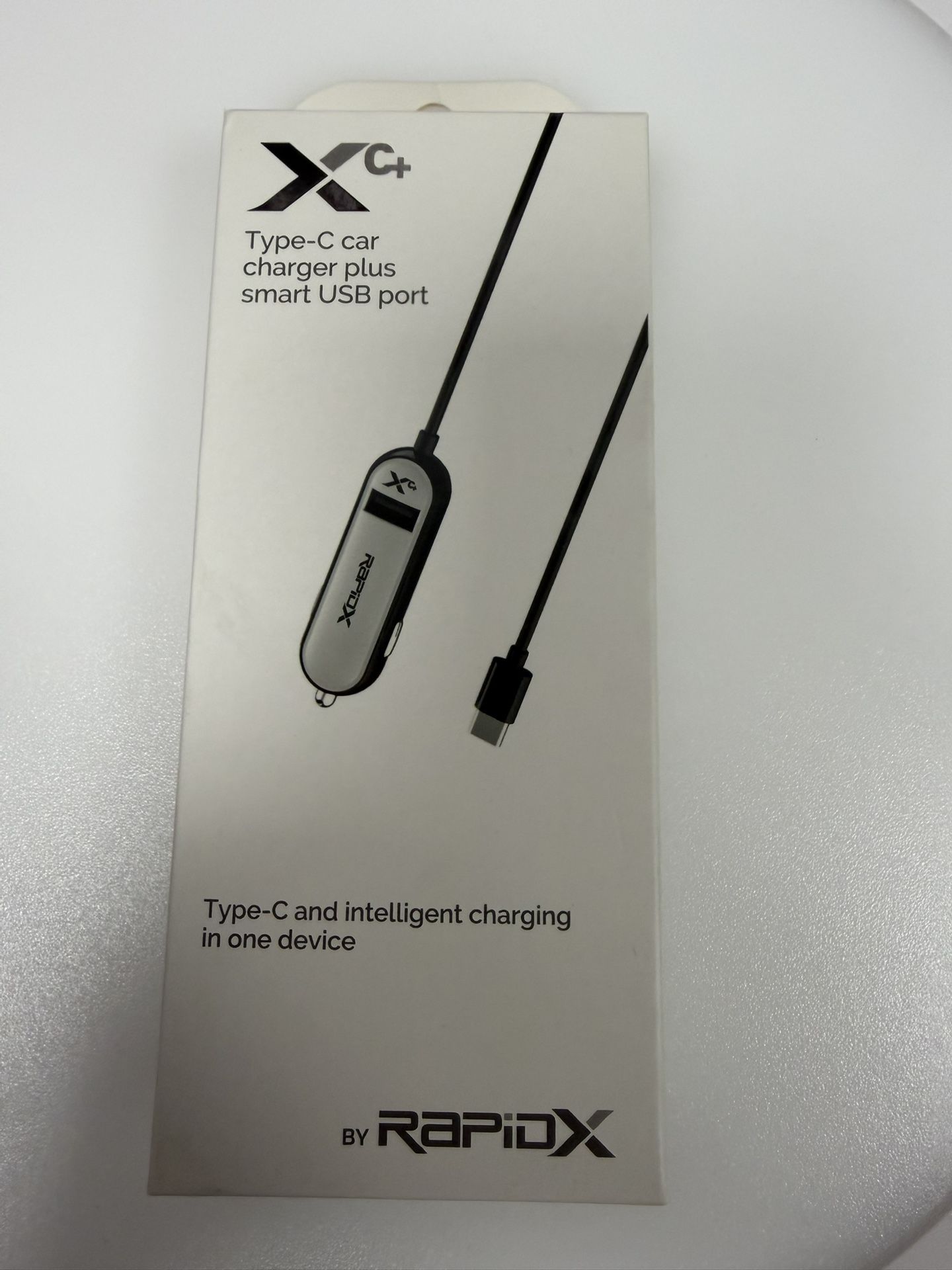 RapidX X-C+ Type-C Car Charger with Smart USB Port is a compact and sleek all-in-one charging solution designed for fast, intelligent power on the road. Featuring a hardwired 3.3-ft Type-C cable plus an additional USB-A smart port, it allows you to charge two devices at the same time while automatically detecting your device to deliver the fastest possible charge up to 27W (5.4A total output). Compatible with most Type-C and USB-powered smartphones and tablets, this charger works with 12V–24V vehicle outlets, making it perfect for cars, trucks, and SUVs. Built for convenience, reliability, and everyday use, it’s an ideal choice for commuting, road trips, and anyone who needs dependable charging on the go.