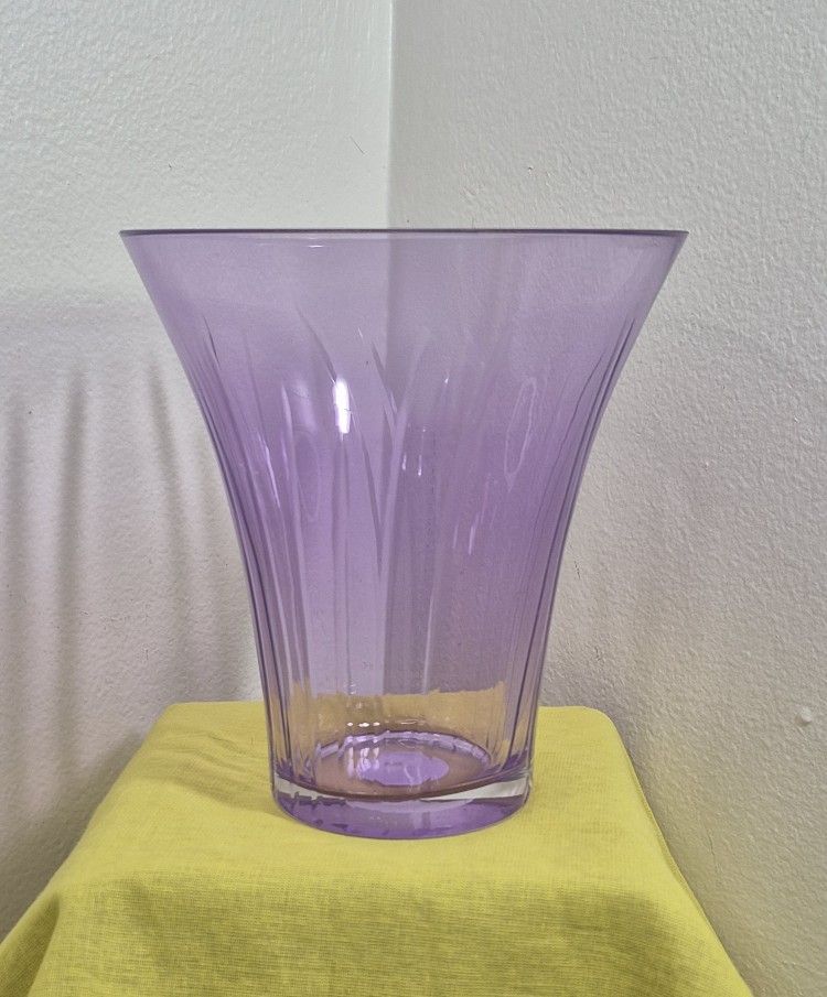 Vintage Lavender/Purple Ribbed Flared Glass Flower Vase FTD 6.5"
