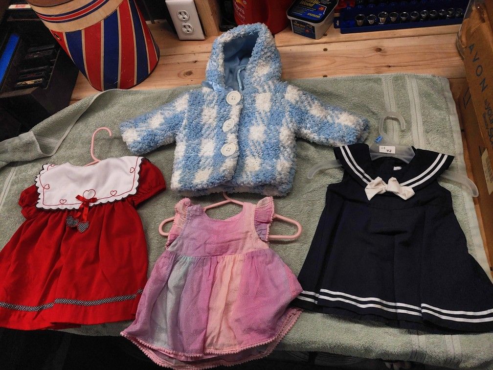 Pink dress 0-3M Blue coat 0-6M Blue dress 6-9M Red dress 12M $2 each or $6 for all