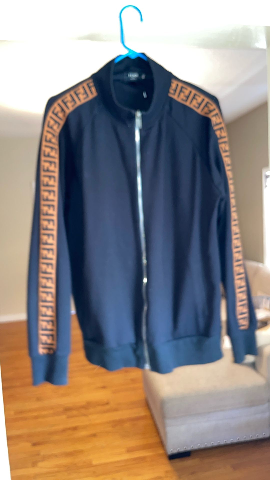Fendi Track Suit Jacket Zip Up, Black And Brown Size Medium