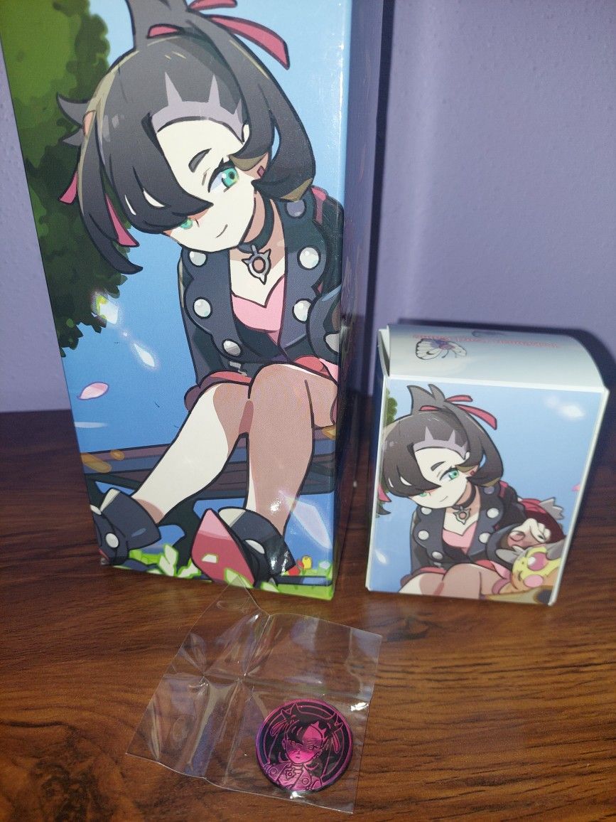 Legendary heartbeats marnie deck box includes long box, deck box, and marnie coin.