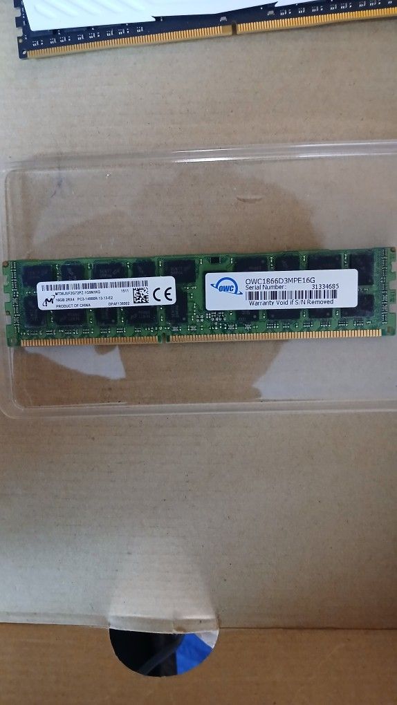 Lightly used OWC 16GB DDR3 RAM stick Speed: 1866MHz Pulled from a working setup, tested and clean Perfect for upgrading older desktops Price: $20 Pickup: Free Delivery: $5–10+depending on distance