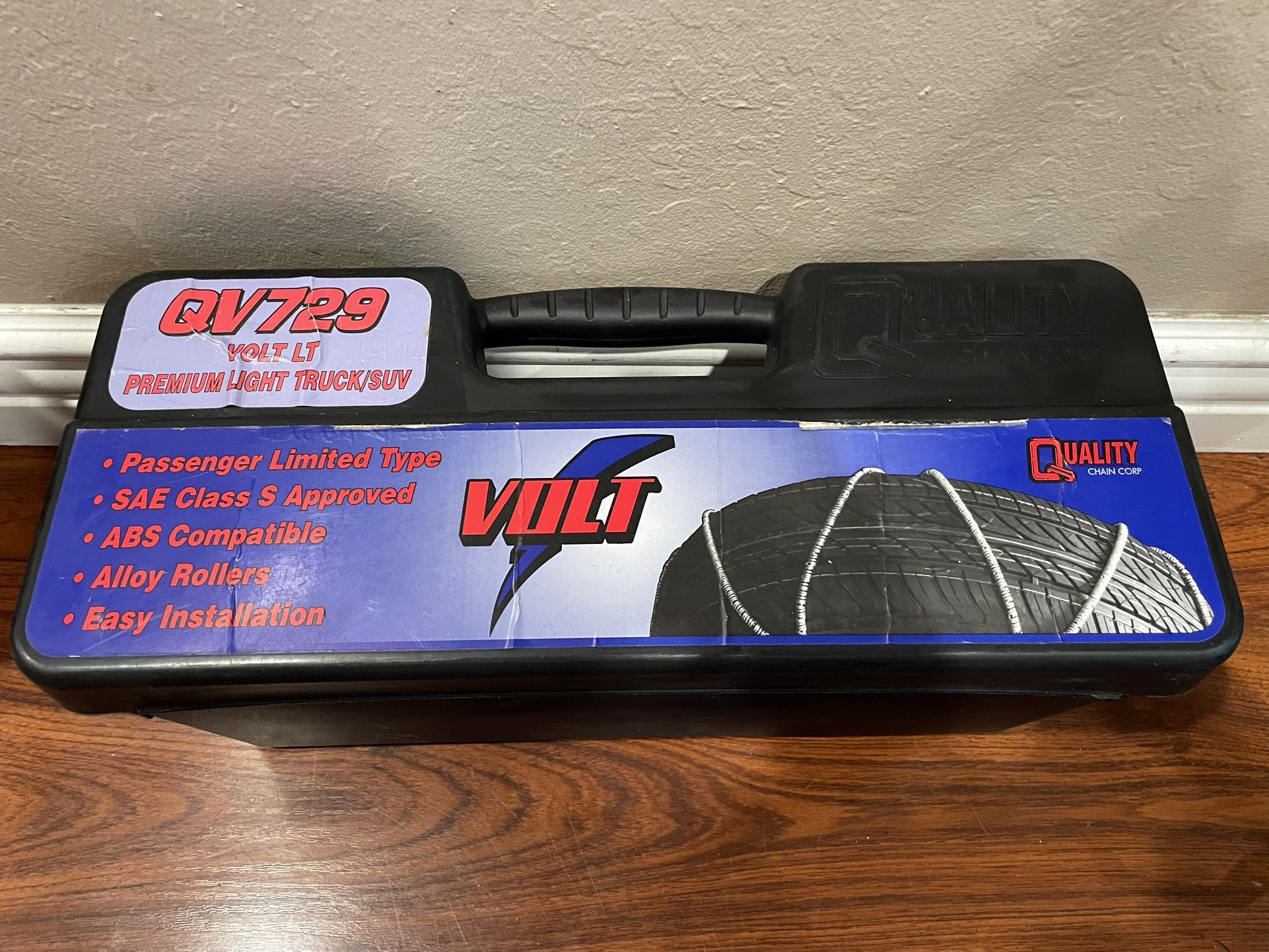 New. Volt LT cable chains are built for larger tires on Light Trucks and SUV's. They also give better traction than ladder style chains and longer wear using cross cables made of ALLOY ROLLERS. The diagonal cross cable design provides a smooth ride and easy installation. Sold with rubber adjusters. *Premium Light Truck / SUV *Snow/Ice Covered Highway Use only *SAE Class (S) Clearance *Do NOT use on trailers. These chains fit the following tire sizes: 275/60-15 255/55-17 235/65-17 215/70-17 225/70-17 295/35-18 235/55-18 225/60-18 235/60-18 285/30-19 275/40-19 255/45-19 235/50-19 275/30-20 285/30-20 295/30-20 275/35-20 255/40-20 235/30-22 245/30-22 8.75-16.5 235/70-15 245/70-15 235/75-15 245/75-15 255/60-16 265/60-16 235/65-16 245/65-16 235/70-16 215/75-16 225/75-16 215/80-16 215/85-16 245/60-17 225/75-17 215/70-17.5 205/75-17.5 215/75-17.5 265/45-18 225/55-18 245/50-19 225/55-19 265/40-20 245/45-20 255/45-20 29X9.50-14 29X9.50-15 29X9.50-16 29x10.50-15 8