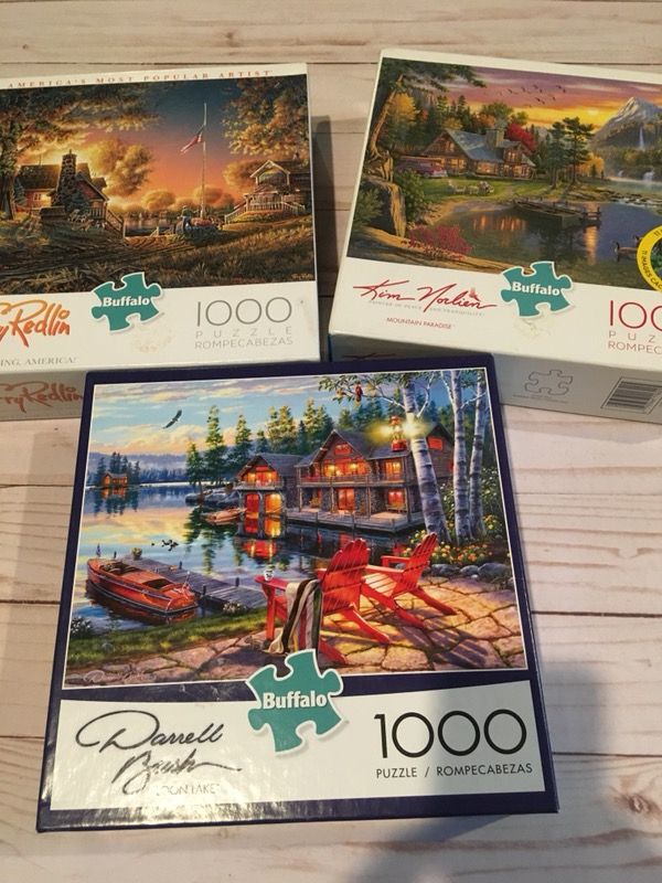 Lot of 3 1000 piece puzzles in excellent condition. Pick-up in Colbert just off of HWY 2 by Cat Tales. We have a LOT for sale!
